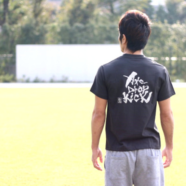 RYUKO T-shirt Waza Series Axe Drop Kick 踵落し Model 綿100% Cotton 色/Color:墨ブラック/Charcoal Black Size:日本サイズ/Japanese standard ポイント/Point: 5% 格闘技イベント会場などで販売され大好評頂きましたこのWazaシリーズTシャツ! プロ書道家の綾筆と龍虎MMAとのコラボ! ベースの色にまで拘った力作! Blockbusters sold in the huge year-end MMA event "RIZIN"(so-called 'Newborn PRIDE') held at Saitama Super Arena/Japan in 2015. These series are collaboration works between AYA, the Professional Japanese Brush Paint Artist, and RYUKO MMA, the Japanese Martial Arts Brand.